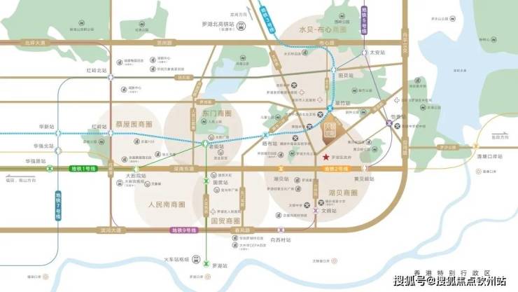 项目位于爱国路与华丽路交汇处,紧邻罗湖区行政中心,双地铁物业(3号线/24号线(规划中)翠竹站,25号线(规划中)木头龙站),6地铁环绕(1、2、3、5、24号线(规划中)25号线(规划中))。