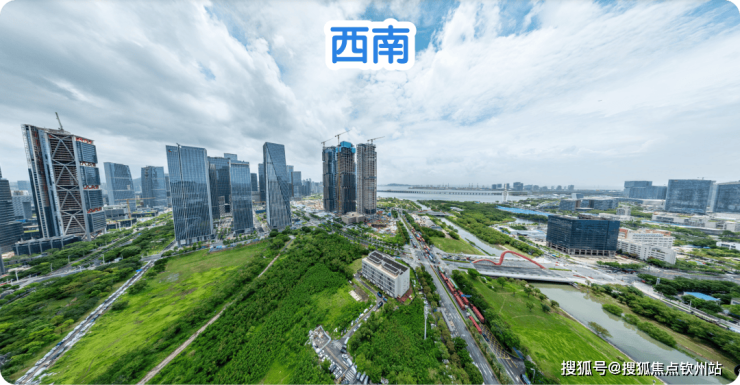 西南:近距楼下是一小块公园绿地,稍远一点有储备新型产业用地,也有在建的前海湾TOD超高层建筑,西南偏南远景视野会非常局限,西南偏西景观还可以,双界河、华侨城欢乐港湾、前海湾内海、珠江口外海这些景观都能看到。
