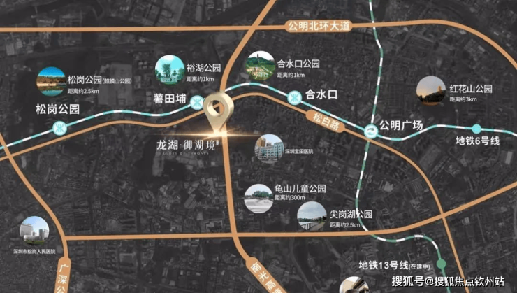 龙湖御湖境距离6号地铁线“薯田埔站”约300米,2站可到公明广场站换乘13号线,直达石岩,南山,3站可到松岗站换乘11号线,直达宝安,南山,前海。