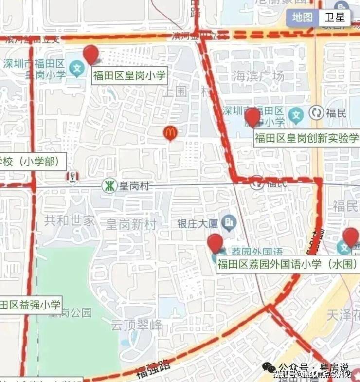 项目按2025年的学区划分来看,小学学区处于皇岗小学、荔园外国语小学(水围),中学学区处于皇岗创新实验学校(初中部)。