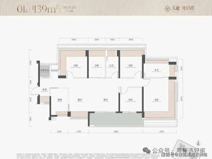 户型为113㎡四房114四房和139㎡五房约290套,2栋100米内30层住宅,2梯5户,其中主力为113㎡四房,整体以朝南及西南为主,有两套朝东北面向金众。