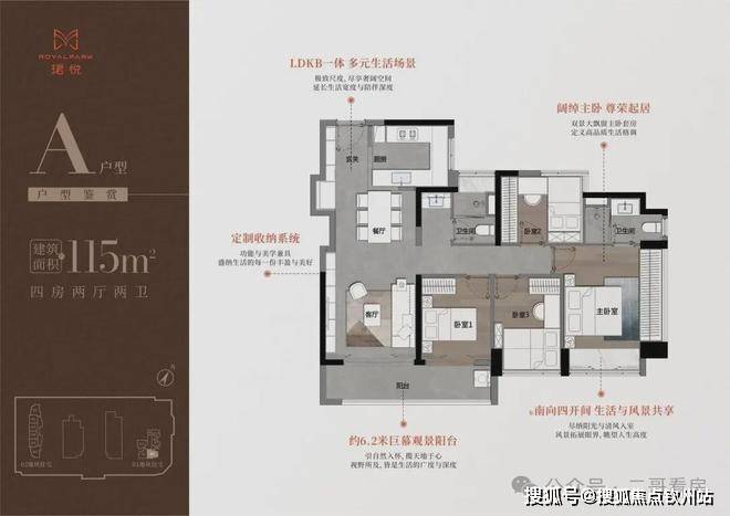 115㎡的4房2厅2卫,折后总价812-913万/套,单价7.03-7.89万/㎡。