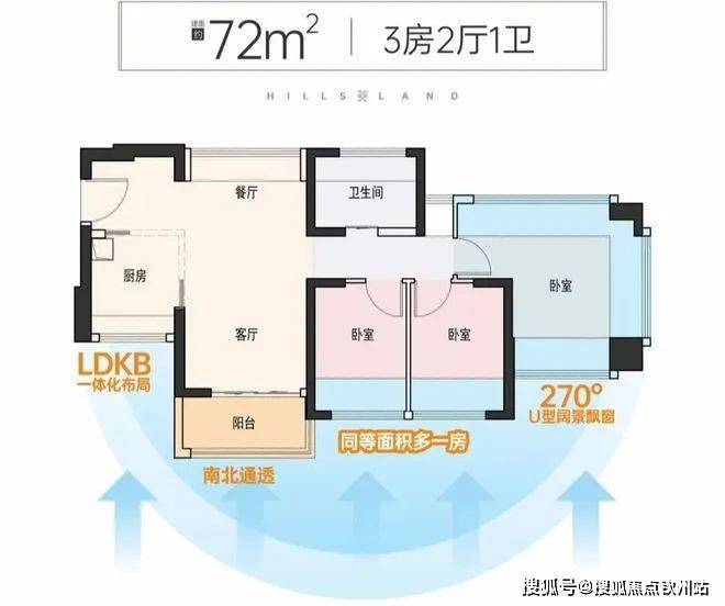 餐客厅厨一体化设计,可根据居住需求调整为大两房格局或者L型餐客厅,空间改造灵动,比较实用的“成长型”户型设计。