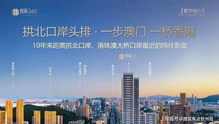 “观宸246”位居拱北口岸头排,珠澳同城核心板块,城市中心+口岸物业双极加持,近10年来距离拱北口岸、港珠澳大桥口岸最近的纯住新盘,左手澳门世界级休闲娱乐配套,右手拱北城市烟火生活,坐享醇熟配套,畅享港珠澳三城无界生活。约1km拱北口岸