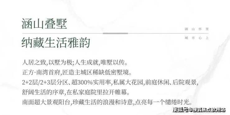 :项目包括大平层、高层住宅和稀缺的叠墅产品,由知名设计师团队设计,强调建筑与外部环境的融合协调。