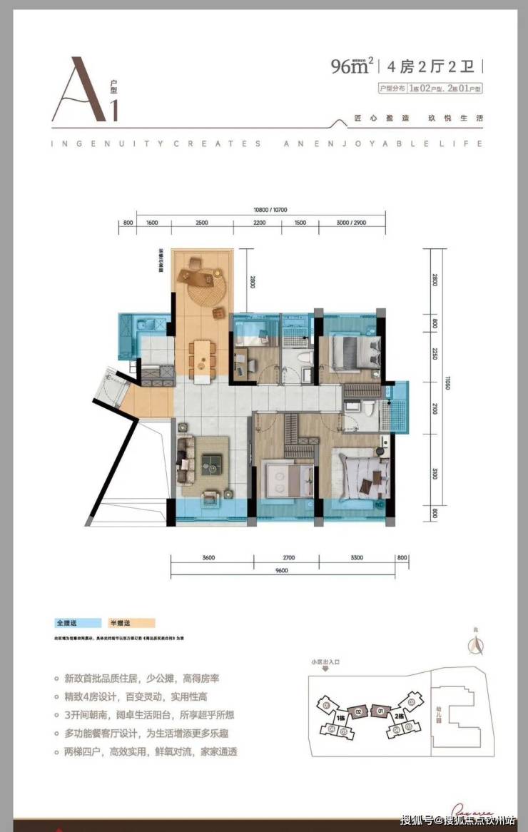 颠覆认知的结构,96平米可以做到4房南北通,低总价,低月供,高实用
