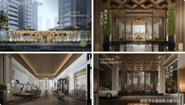 公区做设计也比较豪气,裙楼以金镶玉琢的青绿铝板点缀,近51米恢弘门头融入20根7米香槟金立柱,以立体编制手法,打造宝格丽酒店般的奢华感与仪式感。与此同时,洄游车马院、风光驿亭作为纽带串联起门庭与大堂入口,形成静谧尊贵的归家动线。