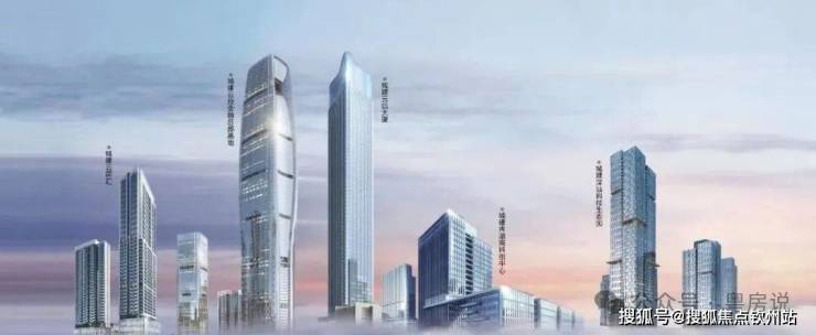 约63万㎡城建云投创新金融总部基地,以约380m地标云投大厦,勾绘城市天际风景线