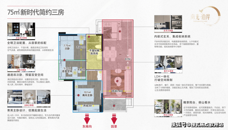 "南光泊岸花园坐拥32万㎡幸福河湿地景观,加推临湖板式住宅,75㎡三房得房率媲美90㎡,89㎡洋房享360°湖景,99㎡四房满足多代同堂。精装准现房,推窗见绿,实现'家在景中'的理想生活。"