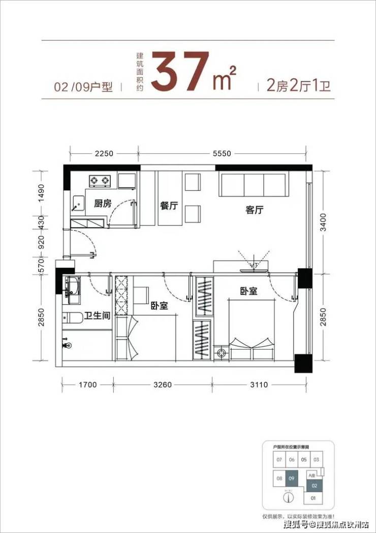 产品稀缺性- 37平方米小两房,实际使用面积54-63平方米,使用率145%-170%