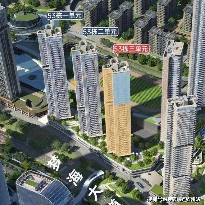 这次3单元是53栋几个单元中位置最好的,位于头排,景观视野基本没有遮挡,高层还能看到部分海景。