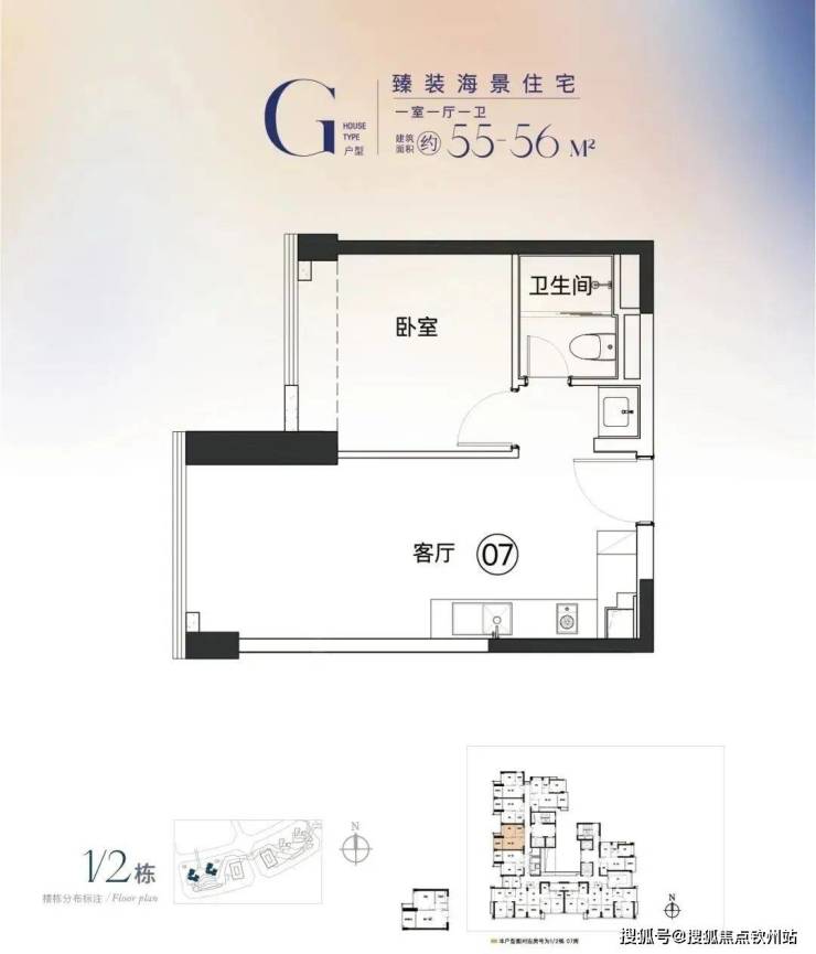 G戶型:55-56㎡,一房