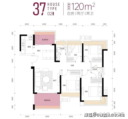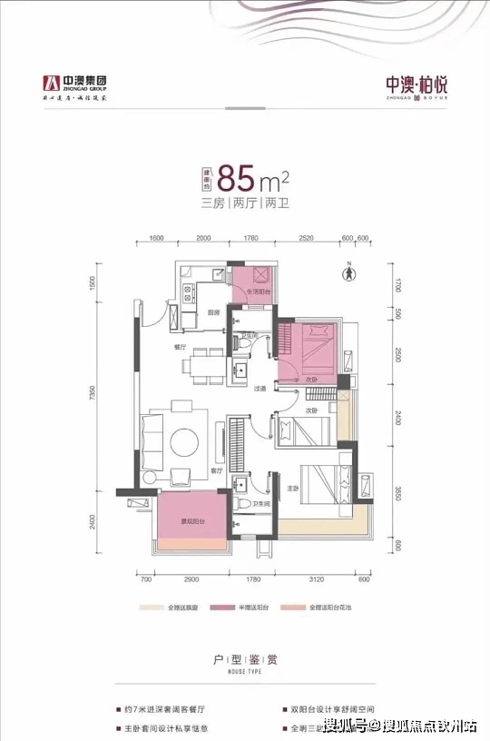 户型:77-137㎡两至五房,主力为 85-120㎡三房至四房,部分河景房源。