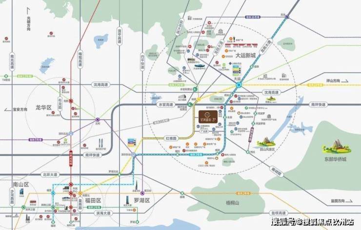 商业配套:项目自带底商,约1.5公里范围内还有天虹商场,荣超购物中心(内有大型沃尔玛商超),约2公里内有金沙摩尔,新世界购物广场,横岗ONE等商业体;在大运还有星河coco park(内有山姆会员店),华润大运天地(北区)已经开业。