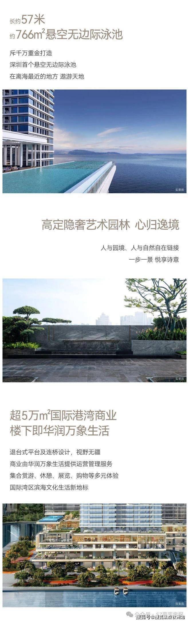商业配套:项目自带约 5 万平方米的商业设施,由华润运营,周边还有海上世界、海岸城等高端商业配套。