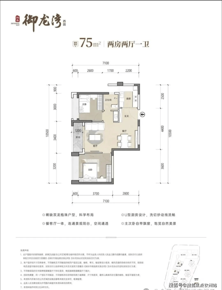 75㎡2房1卫,分布在1栋3/4单元01/08户型,设计的是竖厅稀缺的双龙抱珠格局,客厅开间3.4米,U型厨房,卫生间三段式分离设计!