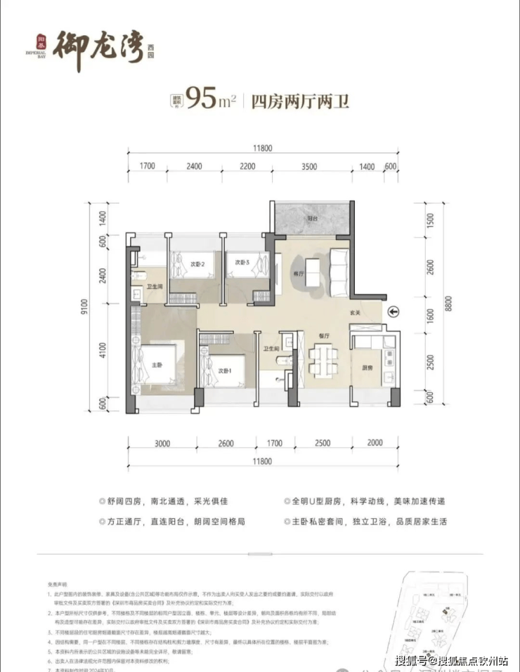 95㎡4房2卫,分布在2栋1单元06户型,设计的是竖厅南北通透格局,客厅开间3.5米,五开间朝南,U型厨房,公卫三段式分离设计!
