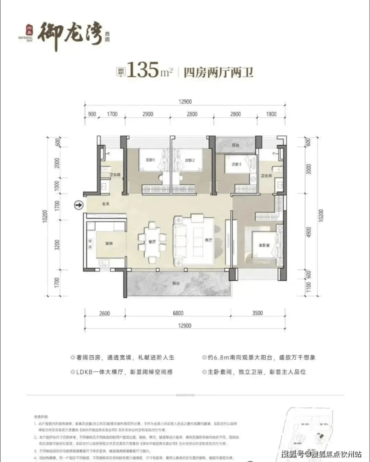 135㎡4房2卫,设计的是横厅南北通透格局,客餐厅开间6.8米,LDKB一体化设计,四开间朝南,U型厨房,公卫三段式分离设计!
