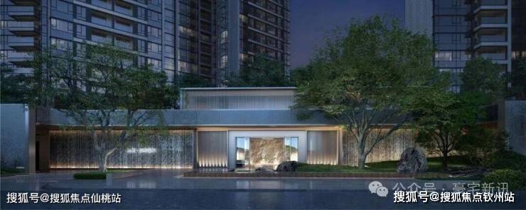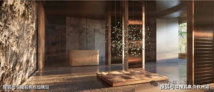 入口50米横向面宽,近6米的高跌水景墙与双层门楼让回家有了一份尊贵与隐奢;随着动线经过穿林,见山,伴水,来到模仿山石色调与铜色金属融合打造的酒店式大堂,一路草木清香、青石铺地、水系流动,自然的隐奢之美扑面而来。