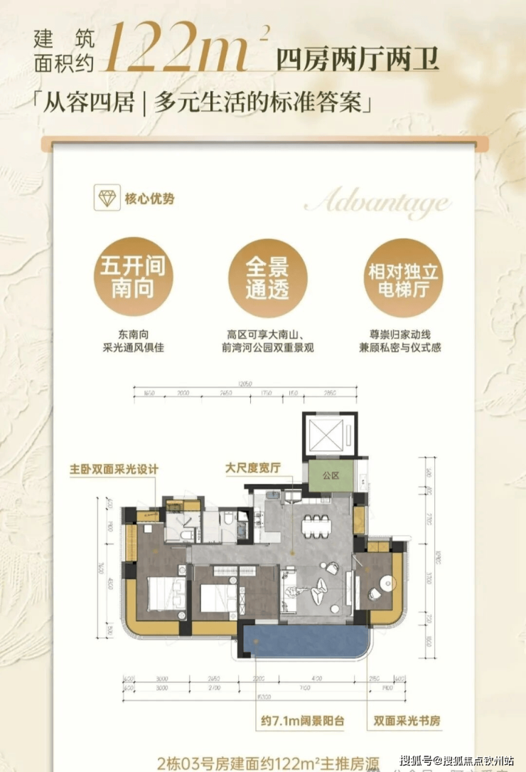 梯户比例:4梯5户,分布式电梯设计,独立电梯厅