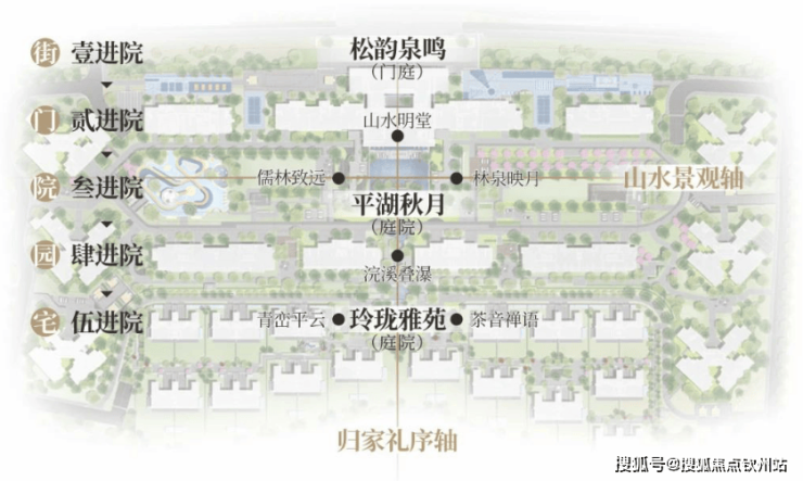 汲取岭南四大名园精华,布局两轴三庭,五进六园,尽显归家礼序。