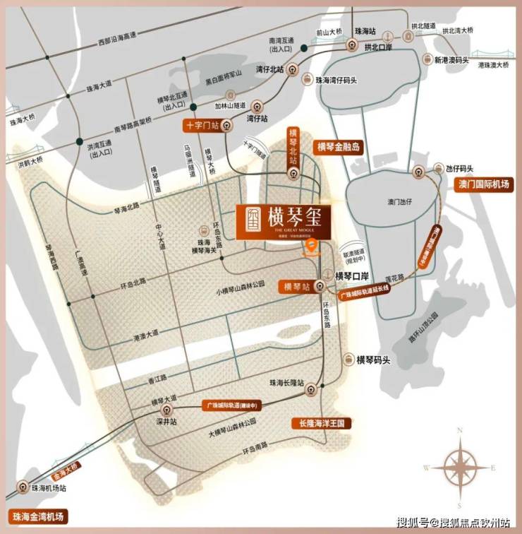 横琴24H通关口岸、横琴码头、琴澳码头(规划中)、澳门轻轨横琴延长线(建设中)、港澳车北上、琴澳民生专线