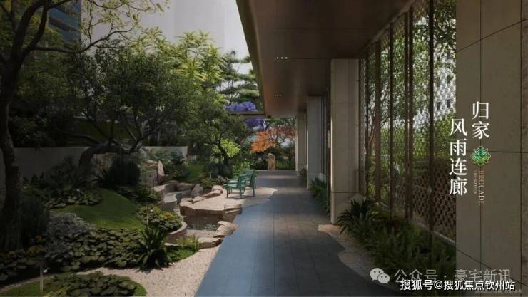 洄游车马院、风雨连廊作为纽带串联起门庭与大堂入口,形成静谧尊贵的归家动线。