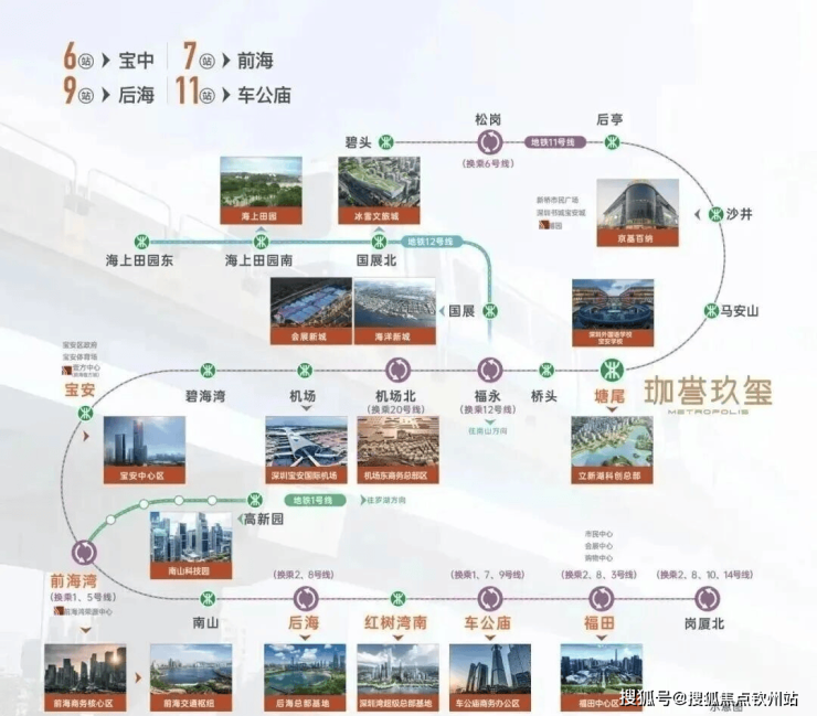 交通配套:步行可达的是地铁11号线塘尾站,衡量地铁配套的价值,不能只看通勤距离,还得考虑线路串联的城市资源,11号线沿途站点都是城市地标级的综合配套,可实现6站到宝中,7站到前海,9站到深圳湾后海,11站到车公庙的快速轨道通行,可以说是“全城精华,一轨直达”。