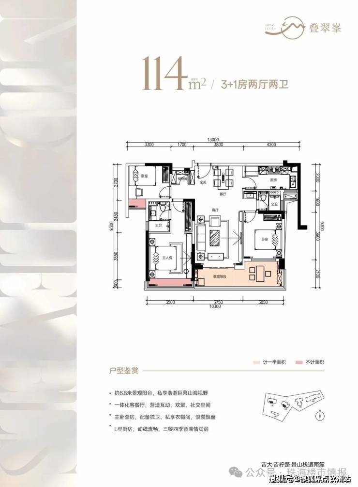 叠翠峯:吉大城央只此在售纯住宅半山新品;建面约86-166㎡半山精装华宅 全城仰望;稀缺资源:半山之上一线无遮近山瞰城;独创户型:南北通透全明户型国际精装