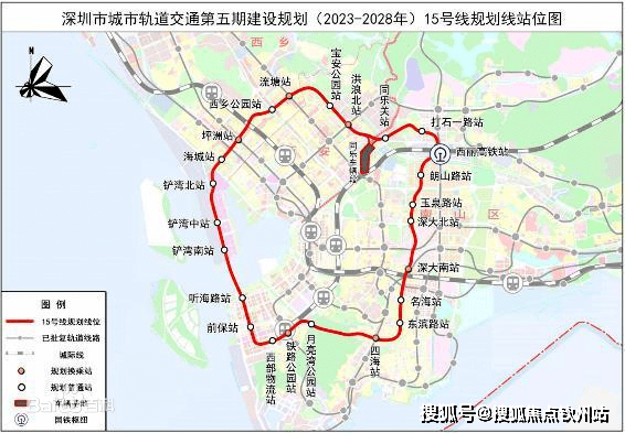 其中,地铁15号线把前海湾、大铲湾、留仙洞总部基地、西丽交通枢纽、南山高新科技园串在一起,是深圳最有价值的一个