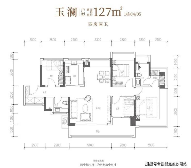 •玉澜·建面约127㎡4房2厅2卫:南向四开间,南北通透,约14.7米IMAX光幕,独立衣帽间。
