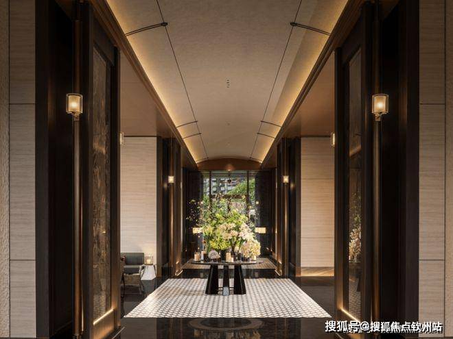 酒店式社区大堂:朝向广场,入口前场、门廊、大堂、内庭院、单元大堂组成的归家动线,配合建筑、景观、室内、标识、灯光一体化设计,汲取糅合后的南洋文化元素细节,把酒店式归家仪式感拉满,彰显非凡气度。