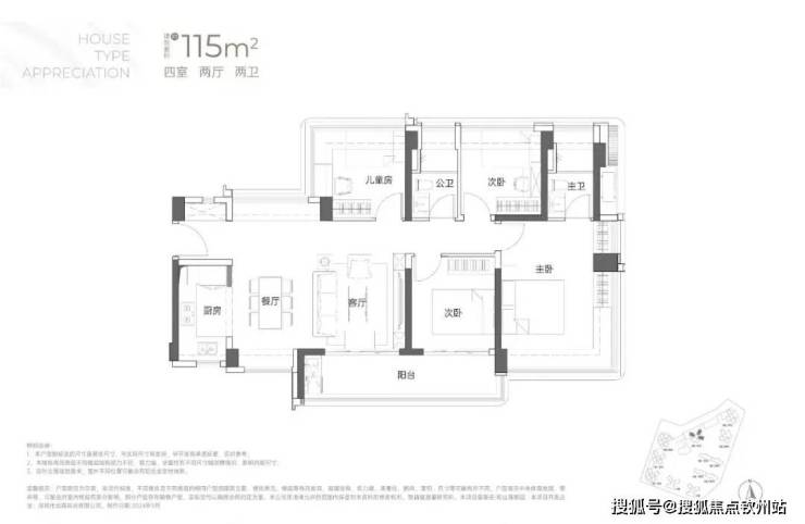 115㎡的4房2厅2卫:横厅南北通透格局,客餐厅6米开间,LDKB一体化,全屋飘窗,4个卧室分别做到了3.9米/3米/2.8米/2.6米的宽度,主卧加1个次卧270°全景飘窗,客厅出6米长的大阳台,L型厨房,得房率约95-97%(包含赠送),西南或东南朝向。115平米户型分布在1栋1单元、1栋2单元、1栋3单元01/02户型,01户型西南朝向都是看小区外围,02户型看向小区;
