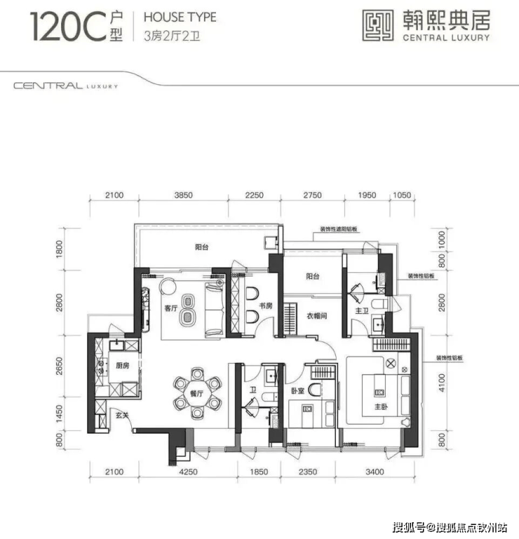 建面约120㎡的3+1房2厅2卫,