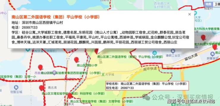 自带一所九班公立幼儿园,南二外平山中小学,深圳大学城丽湖实验学校初中部