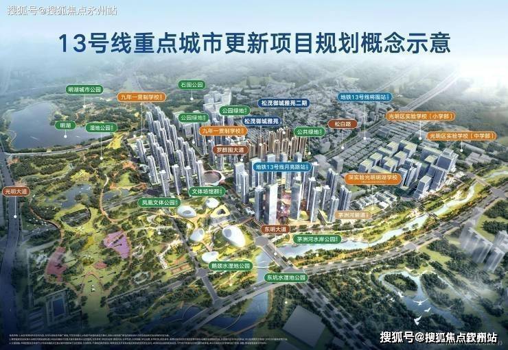 13号线重点更新项目(在建),总投资约420亿元,其体量约为光明城站TOD的25倍。将结合13号线月亮路站塑造、城市蓝绿公园网络提升、产城空间更新,无限链接生产、生活、生态要素,建设成光明区“三生融合示范区”。