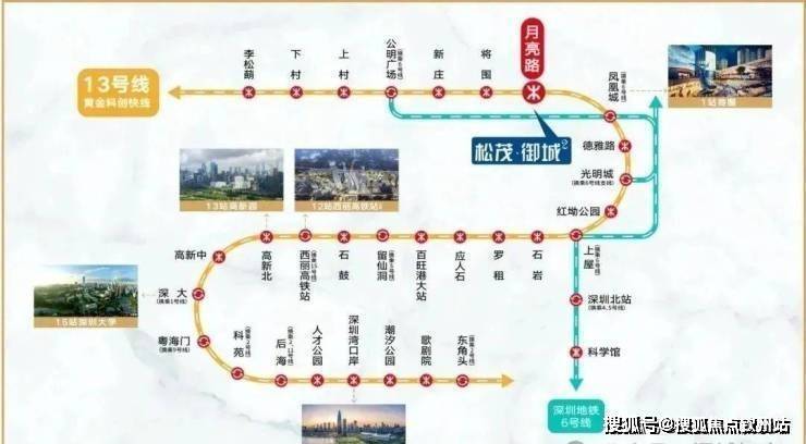 直线距离约400m到达地铁13号线月亮路站(建设中),1站凤凰城,9站到南山(约30分钟到达南山)。2025年将推动13号线二期(北延)建成通车(信息来源:宝安日报)。