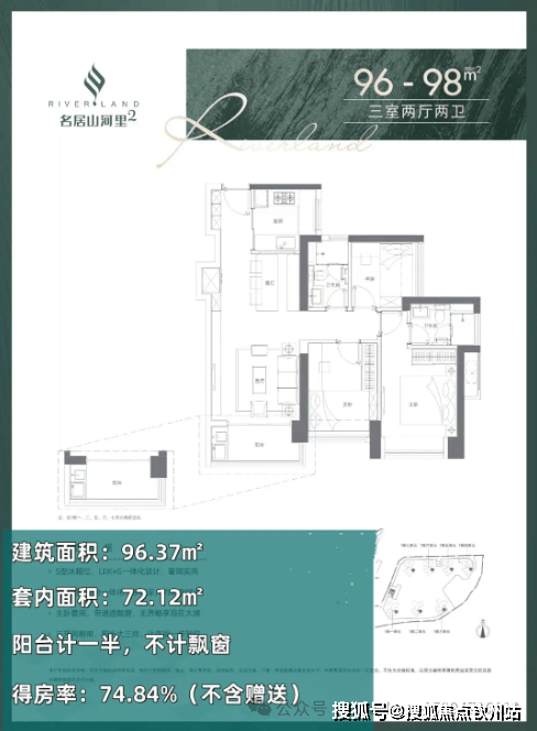 93-95㎡的3房2厅2卫(03户型),设计的是经典竖厅格局,餐客厅一体化,客厅3.5米开间,三开间朝南,U型厨房,得房率:74.83%(不含赠送),阳台1.5米进深,西南朝向。96-98㎡的3房2厅2卫(05户型),设计的是经典竖厅格局,餐客厅一体化,客厅3.5米开间,S墙设计预留冰箱位,三开间朝南,U型厨房,得房率:74.84%(不含赠送),阳台1.5米进深,东南朝向。