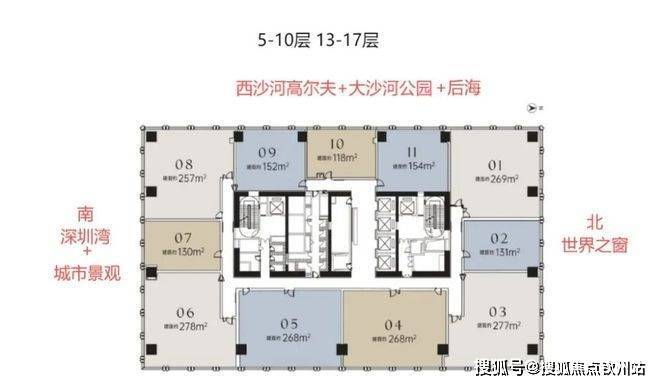 位处深湾 CBD 核心、不用太高楼层,就能眺望红树湾或华侨城湿地公园。项目是神州数码集团总部200米高双塔其中的公寓部分,有空中展示中心、极具艺术感的一线风景样板房。