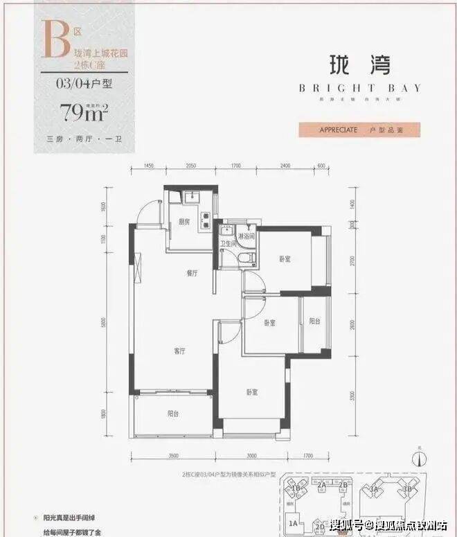 1、户型:建筑面积约78-79㎡极致三房两厅一卫,稀缺高性价比三房