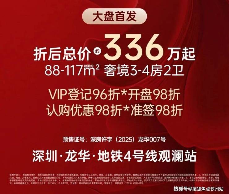 龙华观澜,鸿荣源观城(首推地块备案名:未来平方云山府)计划将在2025年5月份取证入市,本次将会首推1栋2单元,共312套房源,面积有88-98㎡的3房2卫,108-117㎡的4房2卫户型,周边有2024年9月入市的金光华溪山禾玺,备案均价4.43万/㎡以及2024年5月份入市的景勋天著,备案均价4.97万/㎡,实际折后销售均价4.2万/平,这次观城开盘均价大概率也是在这个幅度范围内,预计在2026年12月份带精装交付。