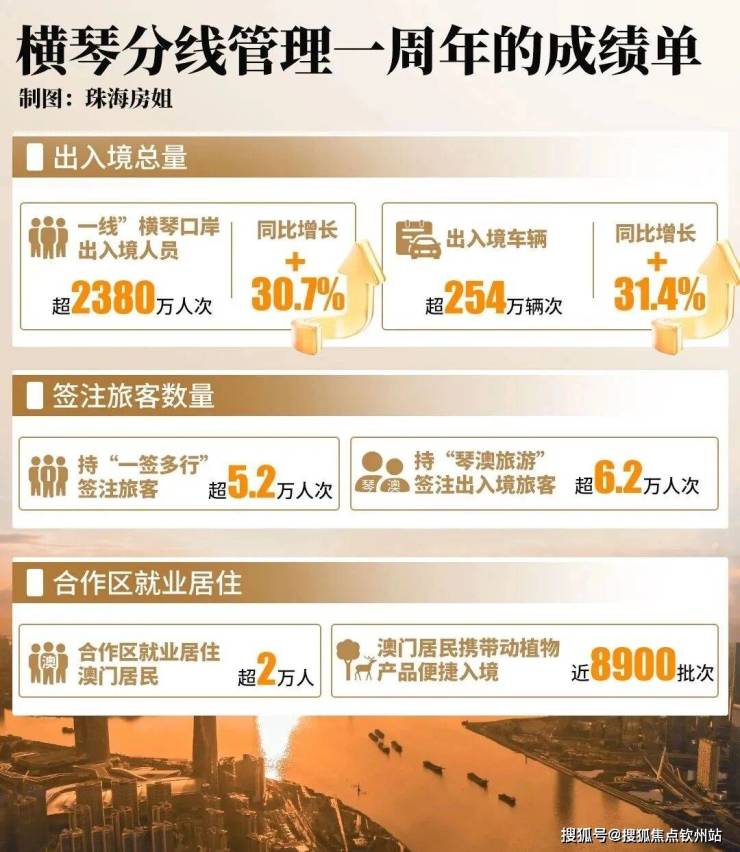 2025年3月,横琴分线管理一周年,经横琴口岸通关达2380万人次,同比增长30.7%。5月2日,横琴口岸还是创下历史性纪录——单日验放出入境旅客达12.84万人次,车辆达1.05辆次。(数据来源:广东省人民政府、央视新闻、横琴在线)