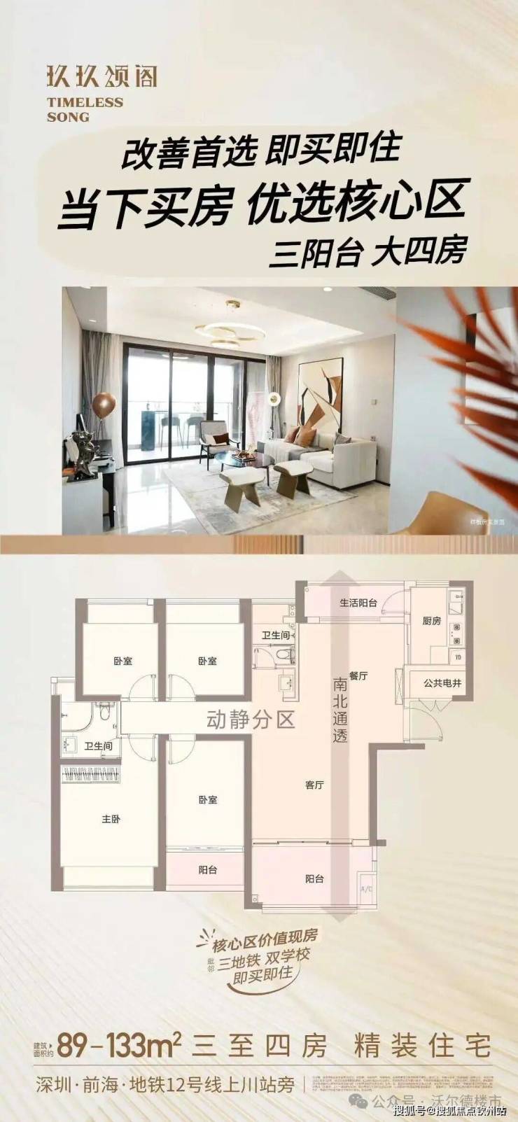 阳台阔绰:前海稀缺在售89㎡三房两卫三阳台,客厅阳台进深1.9米,揽收城园双景