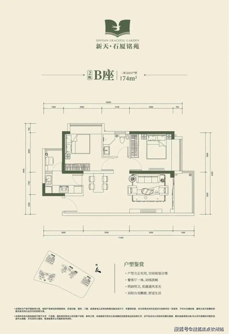 72-74平方米2房2厅1卫:适合年轻夫妇或单身贵族居住,空间布局合理,采光通风良好。