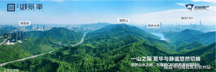 约15000亩(约1000万㎡)塘朗山绵延至此,连同西丽水库、长岭皮水库、塘朗山构成的公园群给项目带来得天独厚的山水景观资源。这里的绿化覆盖率居深圳第一,负氧离子含量是福田中心区的4倍。