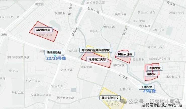 交通方面:项目周边靠近布龙路,五和大道,珠三角环线高速等交通要道,家门口就有25号地铁线“上油松站”在建,深惠城际“民治北站”距离约2公里,目前距离最近的10号地铁线“坂田北站”距离约1.7公里。