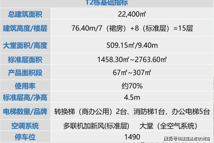T2栋办公区域占地面积约22400平方米,建筑高度达到约76米,符合100米的限高要求。该建筑的8至15层专门设计为办公空间,而低区则规划为商业用途。每一标准楼层的建筑面积约为2500平方米,且楼层高度达到4.5米,为办公人员提供了宽敞舒适的工作环境。