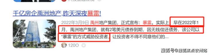 其实这个开发商早在2022年初已经传出过暴雷消息,只是当时珠海还没有禹洲的项目,本地人对它不熟悉,估计也是去年项目开售后大家才开始主动搜索禹洲地产的消息。
