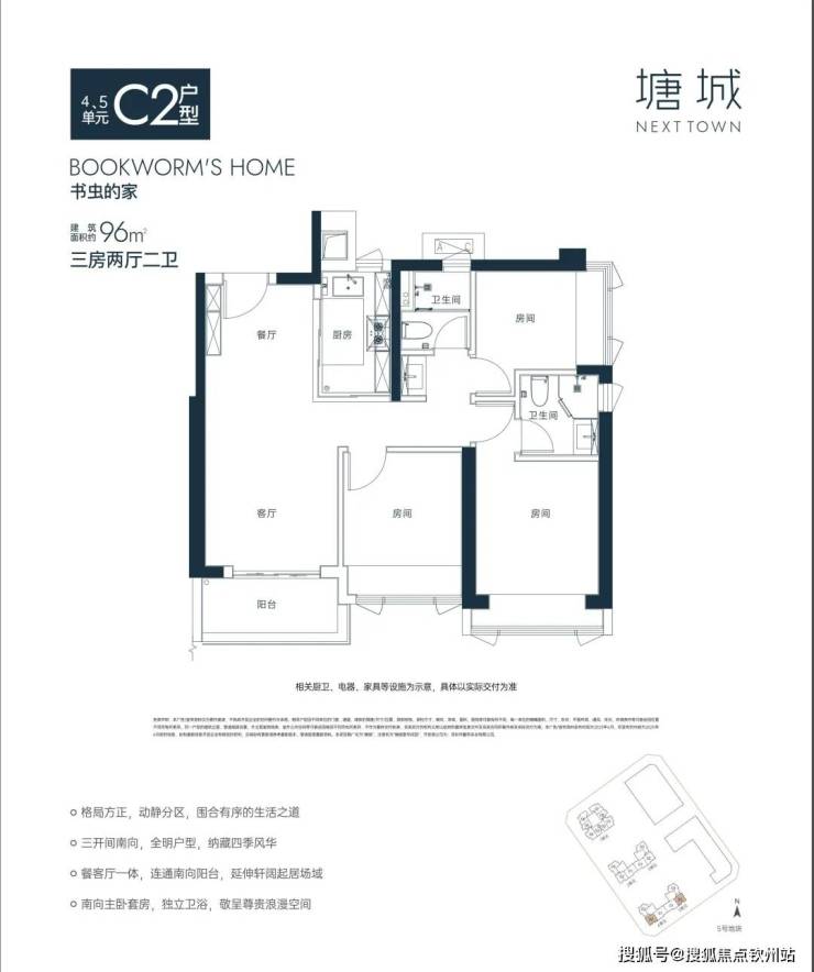 首选C2户型(东南向):户型方正,三开间朝南,公卫三段式分离