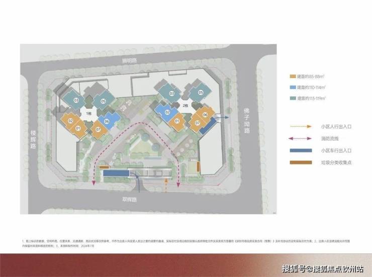 【产品户型】:建筑面积约85-88m²三房两卫、建筑面积约110-114m²四房两卫、建筑面积约113-119㎡四房两卫